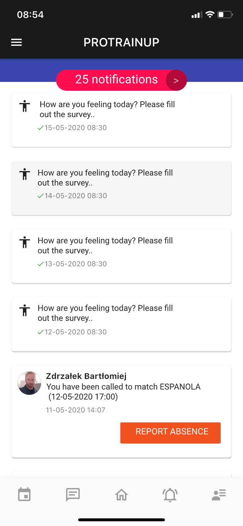 - oznámení o nahlášení absence na tréninku/zápasu rodičem/hráčem (trenér),