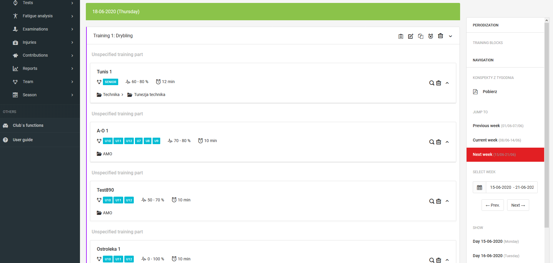 L'ordre des exercices est déterminé en faisant glisser l'exercice vers la partie appropriée de l'entraînement. Pour ce faire, saisissez l'exercice avec la souris et faites-le glisser vers la partie appropriée.