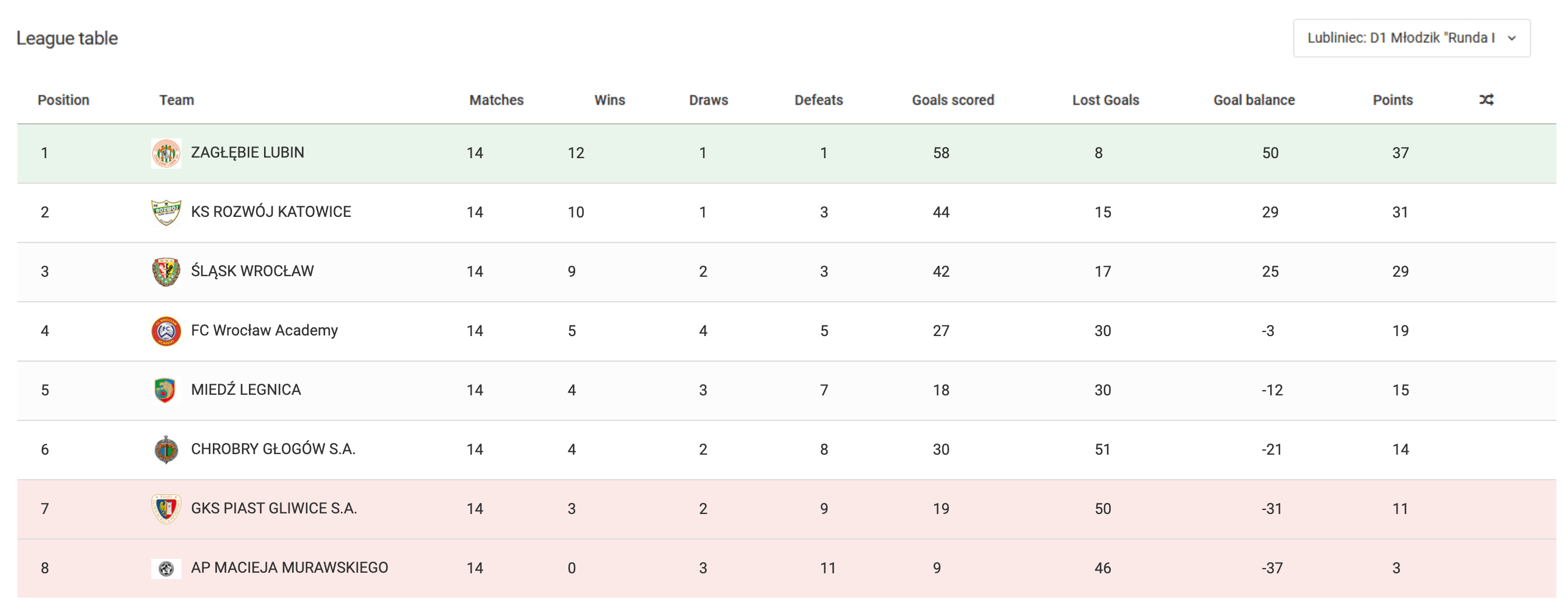 Pamatojoties uz sistēmā ievadītajiem spēles parametriem un spēļu rezultātiem, katrai spēlei automātiski tiek ģenerēta līgas tabula.