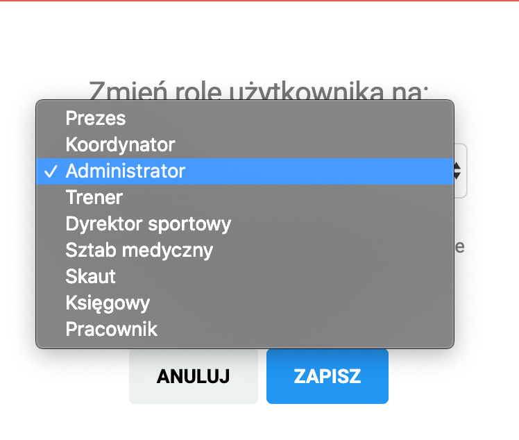 Dyrektor sportowy - pełny dostęp bez możliwości edytowania zasobów systemu,