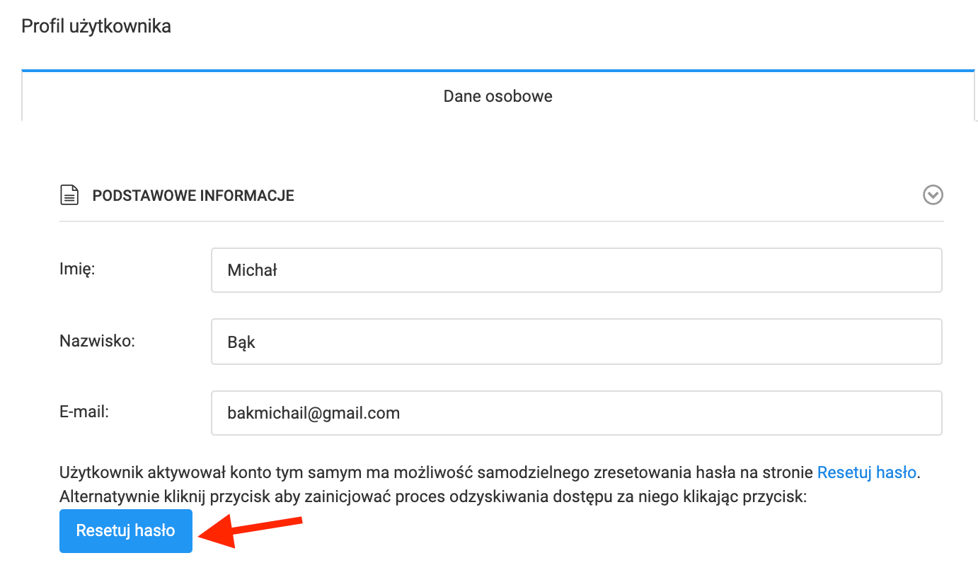 Ta funkcja przydaje się w momencie, kiedy zawodnik zapomni swojego hasła i sam nie będzie w stanie odnaleźć funkcji resetu hasła. Opis tej funkcji znajdziesz we wcześniejszych rozdziałach przewodnika.