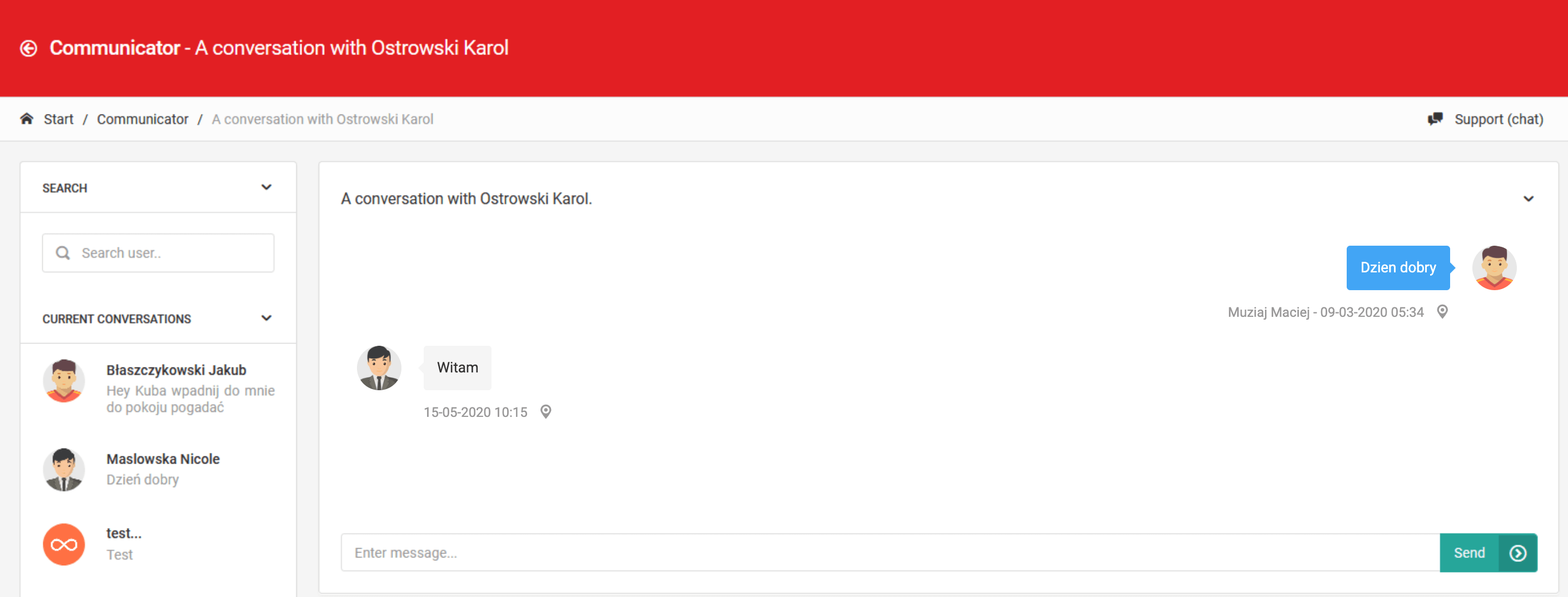 Мессенджер доступен как из мобильного приложения, так и из веб-браузера, что позволяет общаться между пользователями системы. Существует два режима разговора - личный (от 1 до 1) и групповой, в котором может участвовать большее количество пользователей.